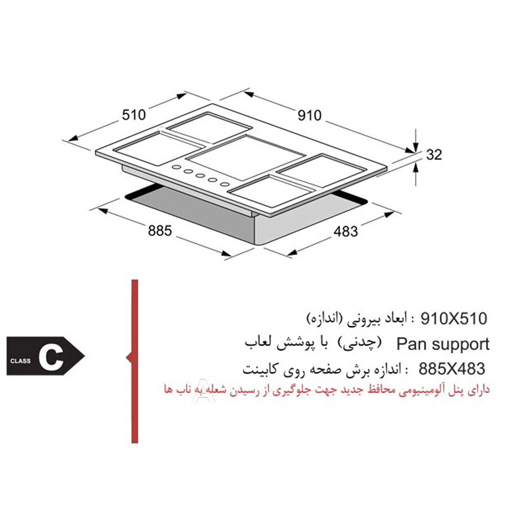نوع گاز مصرفی: گاز شهری (قابلیت تبدیل به گاز مایع)