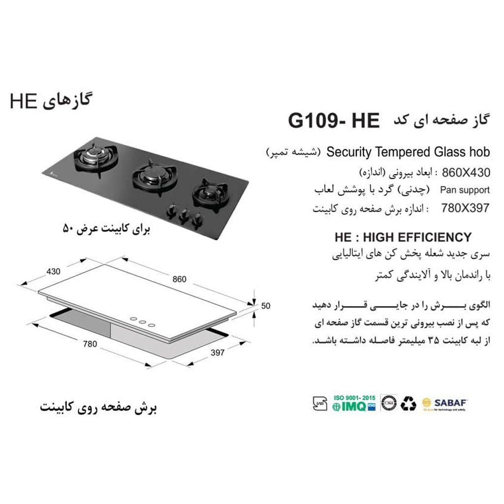 نام محصول: گاز رومیزی (صفحهای) اخوان مدل G109-HE