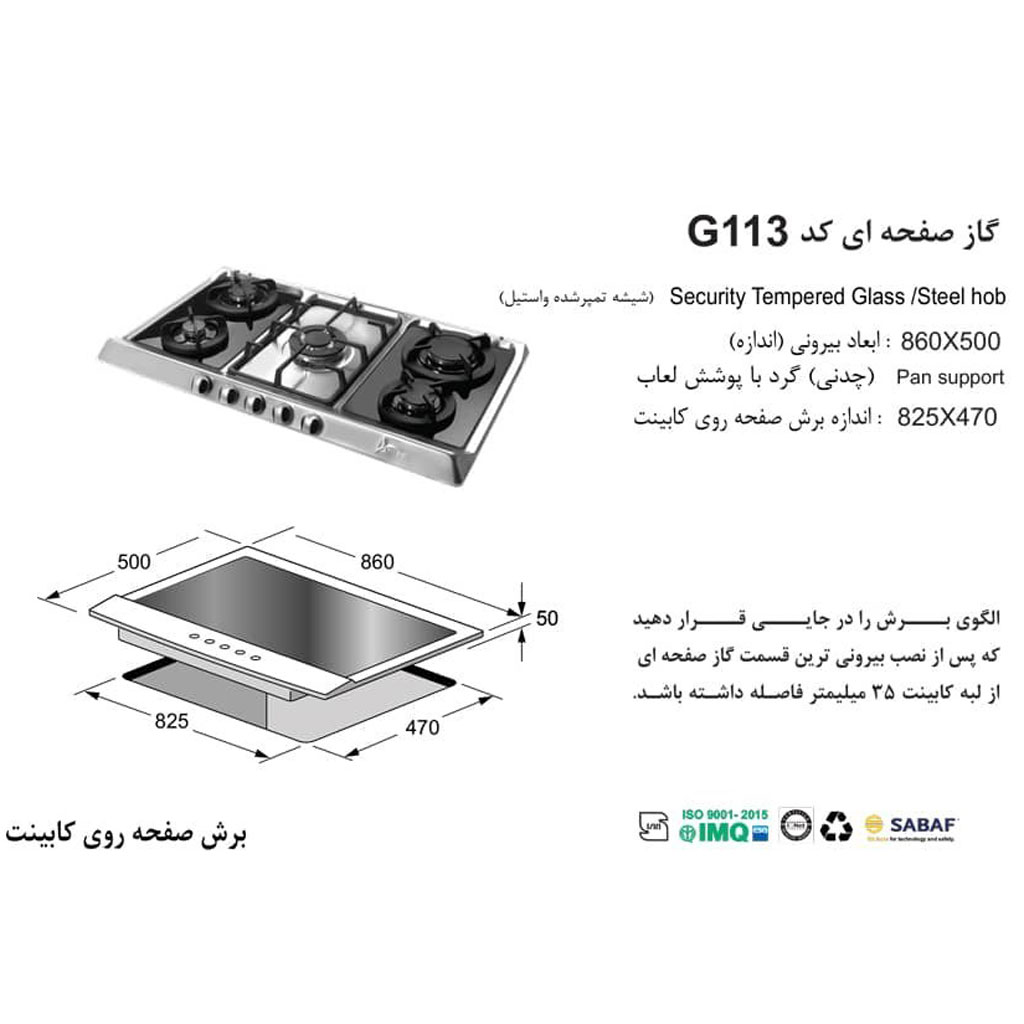 نام محصول: گاز رومیزی (صفحهای) اخوان مدل G113 یا G113-HE