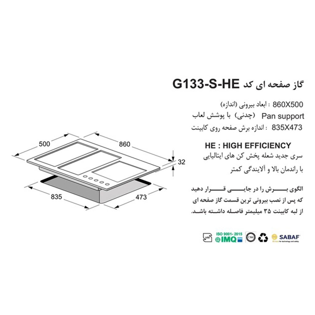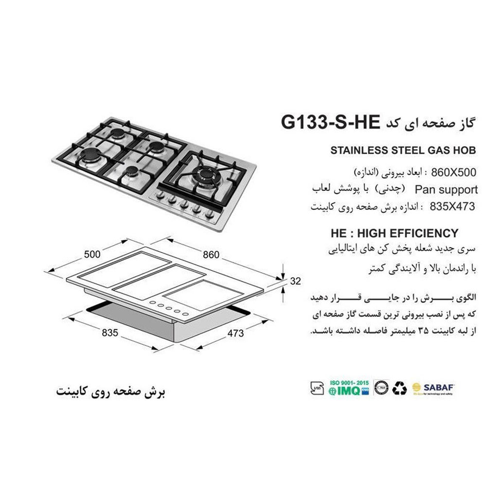 مدل محصول: گاز رومیزی اخوان جی 133 اس|Akhavan Built-in gas G133SHEXL