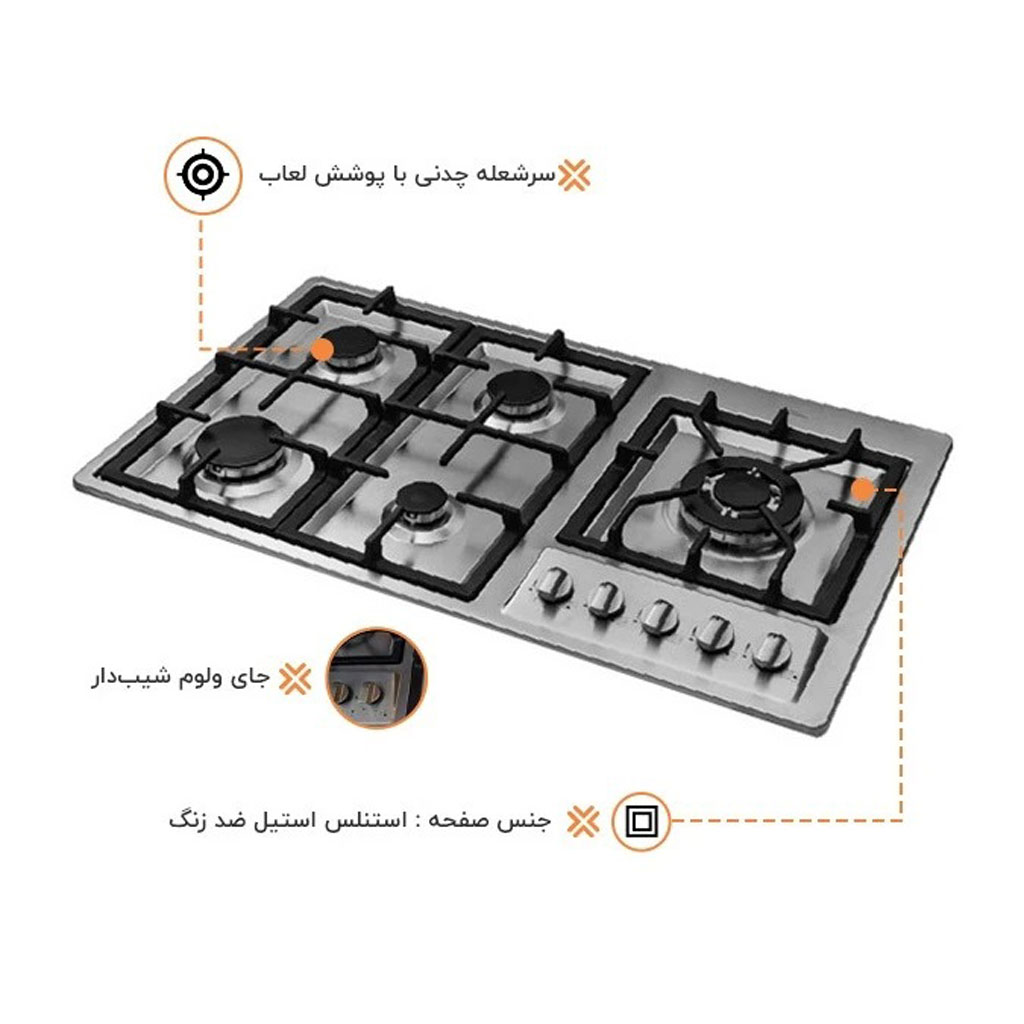 تعداد شعله: پنج شعله (۱ شعله کوچک، ۲ شعله متوسط، ۱ شعله بزرگ، ۱ شعله پلوپز راست)