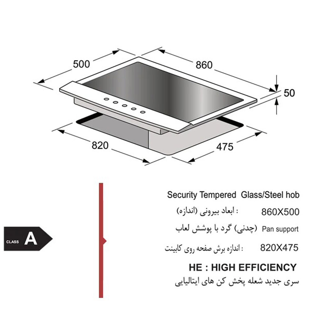جنس صفحه: ترکیب استیل دورتادور و شیشه سکوریت مشکی در مرکز