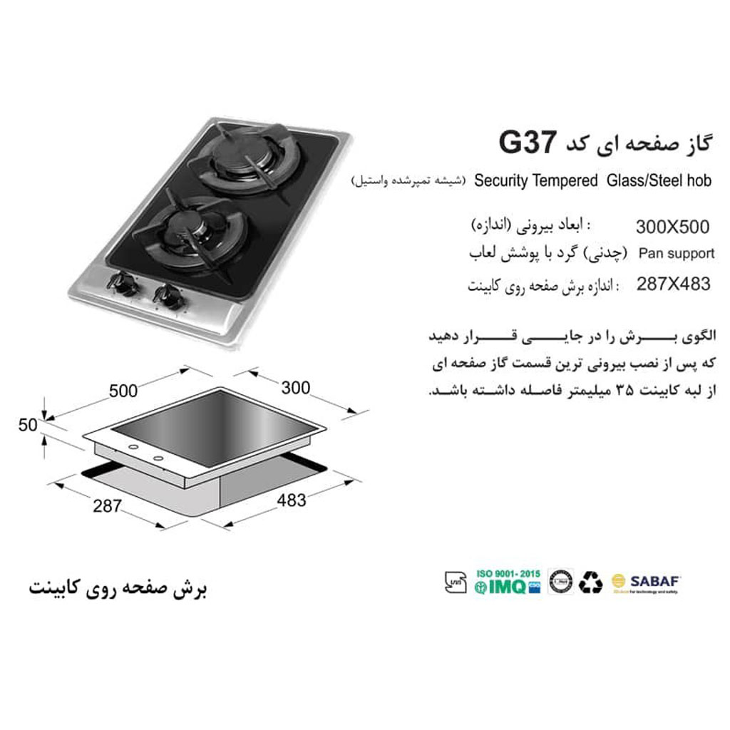 کیفیت و دوام گاز اخوان مدل G37، ریشه در استفاده از قطعات اصلی و حیاتی ساخت شرکت معتبر ایتالیایی ساباف (SABAF) دارد. این قطعات که شامل سرشعلهها، فندک الکتریکی و ترموکوپل میشوند، استانداردهای اروپایی را رعایت کرده و ضامن عملکرد روان و عمر طولانی دستگاه هستند. سیستم ایمنی ترموکوپل فوقسریع (TOP TIME) نیز یک لایه حفاظتی ضروری فراهم میکند که بهمحض خاموش شدن غیرمنتظره شعله، جریان گاز را بهطور کامل قطع مینماید.