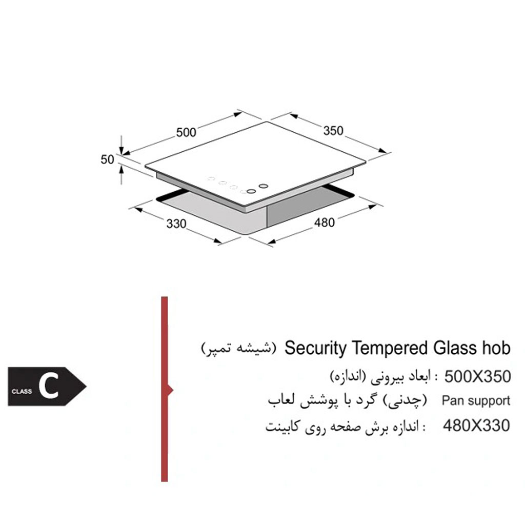 عرض گاز: 30 سانتی متر
