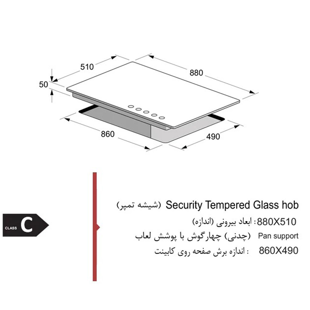 نوع: شیشه 5 شعله (شامل ۱ شعله کوچک، ۲ شعله متوسط، ۱ شعله بزرگ و ۱ شعله پلوپز)