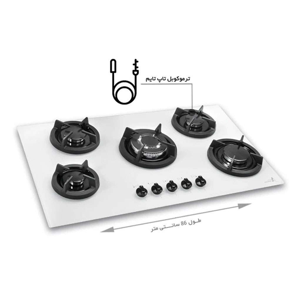 تعداد شعله: پنج شعله (1 شعله پلوپز، 1 شعله بزرگ، 2 شعله متوسط و 1 شعله کوچک)