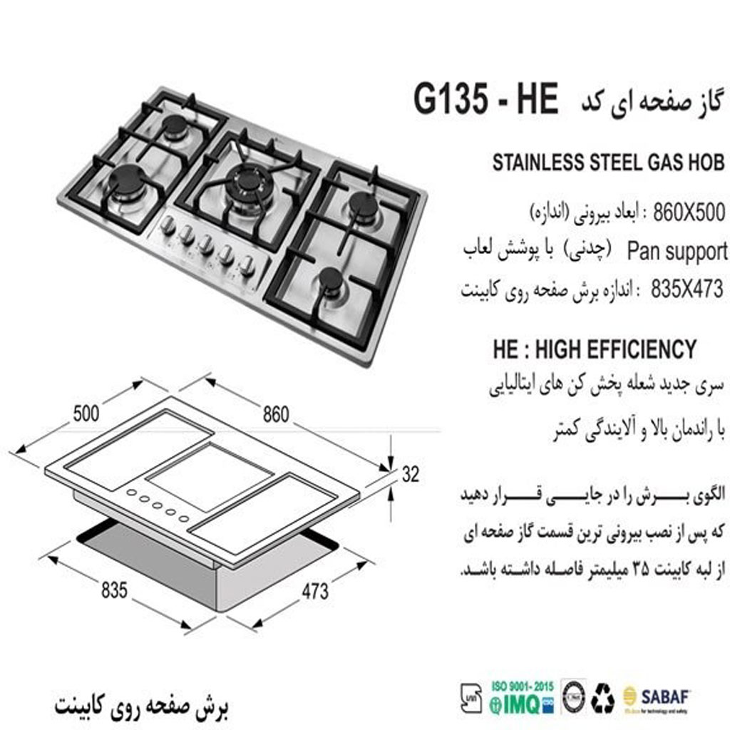 مدل محصول: گاز رومیزی اخوان جی ای 135 (Akhavan gas GI135NP)
