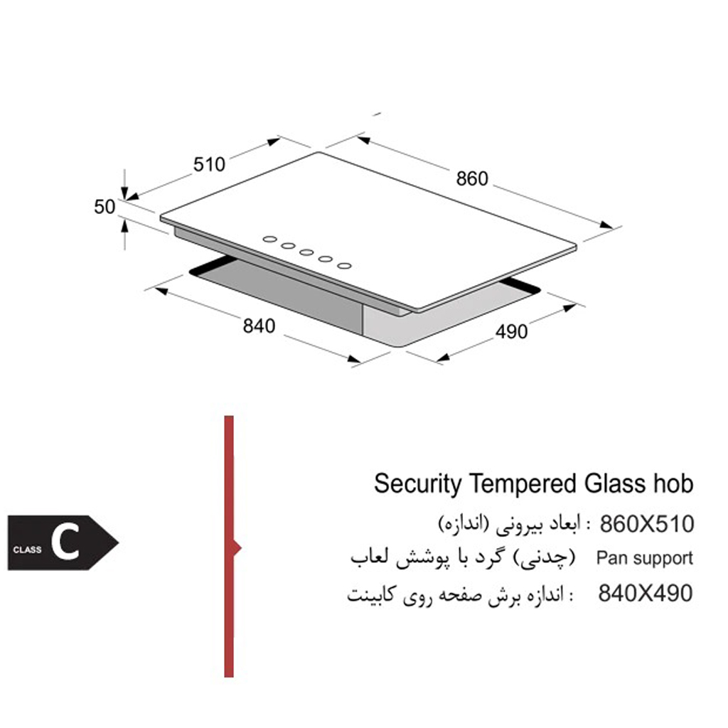 اندازه طول اجاق گاز : 86 سانتی متر