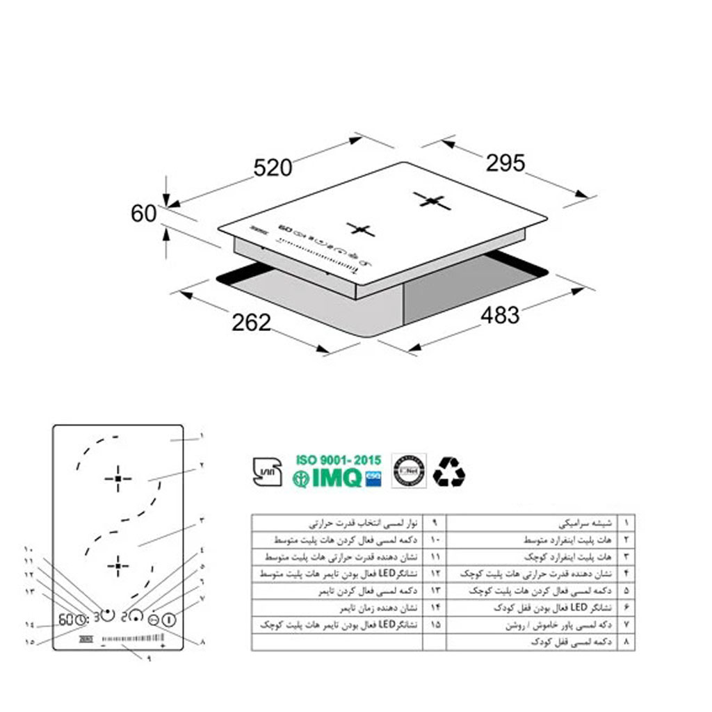 جنس صفحه: سرامیک یا شیشه سرامیکی مشکی مقاوم در برابر حرارت بالا