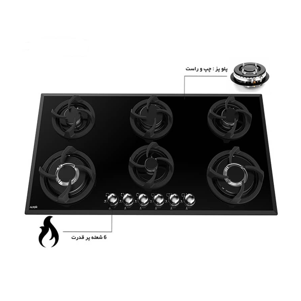 صفحه شیشه سکوریت مشکی صفحه گازی آلتون G601، جلوهای یکدست، لوکس و بسیار مدرن به فضای آشپزخانه میبخشد. چیدمان هوشمندانه شش شعله در سه ردیف، امکان قراردادن همزمان تعداد زیادی ظرف با ابعاد مختلف را بدون تداخل فراهم میکند. دو شعله پلوپز (Wok) دوگانه در کنار هم، قلب تپنده این صفحه گاز برای تفتدادنهای سریع و پختهای آسیایی محسوب میشوند. استفاده از شبکههای چدنی و ولومهای سرب با سپر حرارتی، دوام و پایداری دستگاه را در شرایط استفاده سنگین تضمین مینماید.