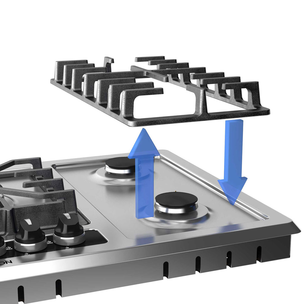 طراحی خاص پلوپز دیفندی، حرارت را به طور یکنواخت در سراسر کف قابلمه پخش کرده و زمان پخت را کاهش میدهد. شبکه چدنی گسترده نیز سطحی پایدار و ایمن برای قرارگیری انواع ظروف ایجاد کرده و به دلیل پهنای مناسب، جابجایی ظروف روی شعلهها را آسان میکند. مشعلهای کناری از نوع AE با کیفیت بالا هستند که عملکردی روان و بیصدا دارند.