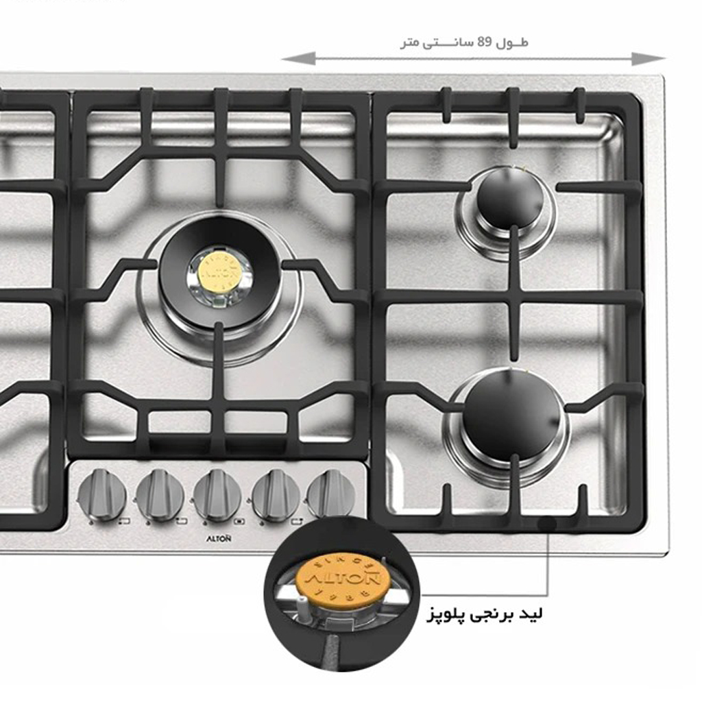 گاز رومیزی آلتون مدل IS525 با صفحه استیل ضد زنگ خشدار (گرید 304)، طراحی شیک و مدرنی ارائه میدهد که علاوه بر زیبایی، دوام و مقاومت بالایی در برابر خط و خش دارد. گاز آلتون مدل IS525 با ابعاد مناسب (۸۹ در ۵۱ سانتیمتر) و پنج شعله با چیدمان بهینه، برای نیازهای آشپزی خانوادههای ایرانی و استفاده از قابلمههای متوسط و نیمه بزرگ طراحی شده است. شعله پلوپز پرقدرت در مرکز، امکان پخت و پز همزمان و کارآمد را فراهم میآورد.
