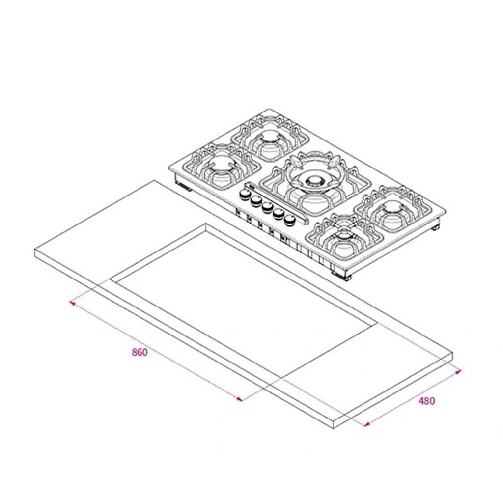 ابعاد برش (برای نصب توکار): ۸۶۰ × ۴۸۰ میلیمتر