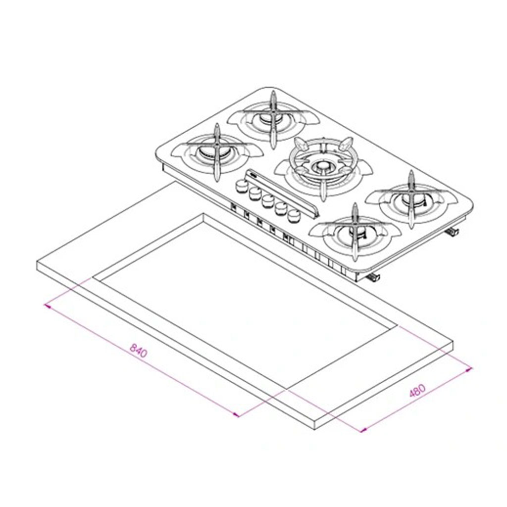 ابعاد برش (برای نصب توکار): ۸۴۰ × ۴۸۰ میلیمتر
