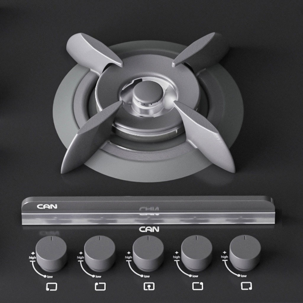 صفحه شیشه سکوریت در دو رنگ کلاسیک سفید و مشکی، امکان هماهنگی کامل با طیف گستردهای از طراحیهای آشپزخانه را فراهم میآورد. این سطح صاف و براق تمیزکاری بسیار آسانی دارد و ظاهری لوکس و امروزی به فضای آشپزخانه میبخشد. چیدمان استاندارد پنج شعله با پلوپز مرکزی نیز برای اکثر نیازهای پختوپز کافی است.