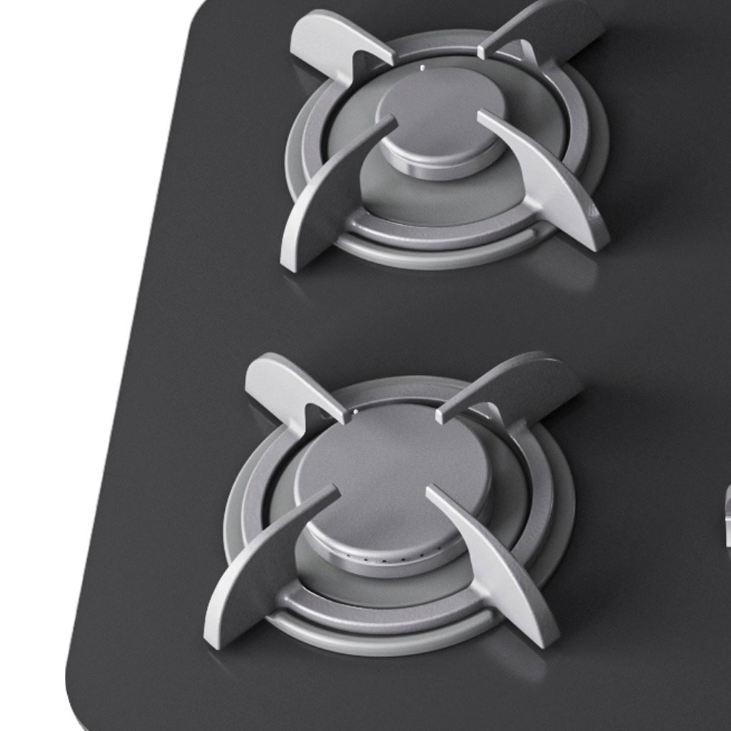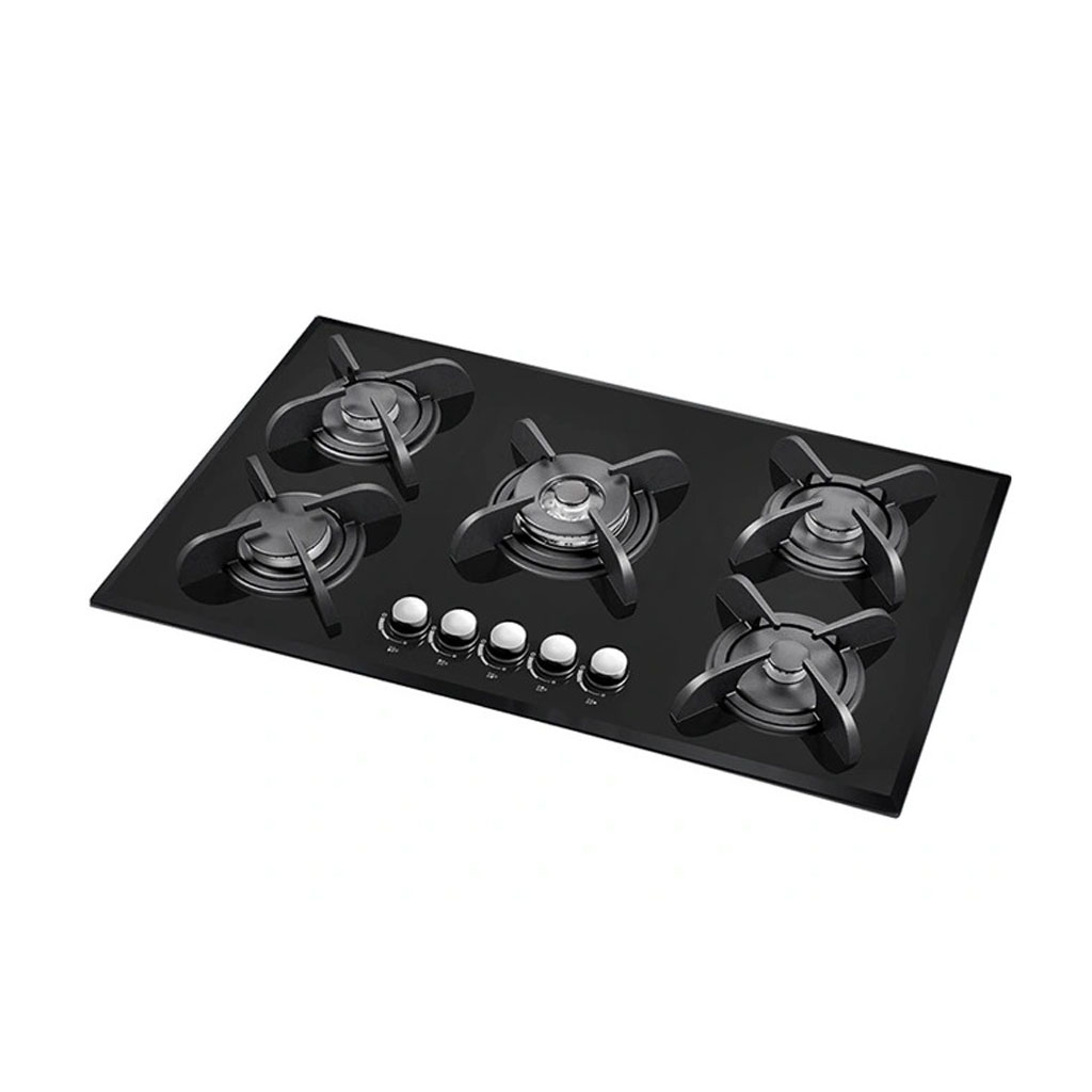 صفحه شیشه سکوریت مشکی با ابعاد استاندارد، جلوهای امروزی و هماهنگ با دکوراسیونهای مدرن به آشپزخانه میبخشد و به دلیل سطح صاف و غیرمتخلخل، تمیزکاری فوقالعاده آسانی دارد. چیدمان معمول پنج شعله با پلوپز مرکزی، امکان پختوپز همزمان چندین غذا را فراهم میآورد.
