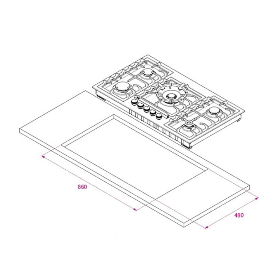 ابعاد برش (برای نصب توکار): ۸۶۰ × ۴۸۰ میلیمتر