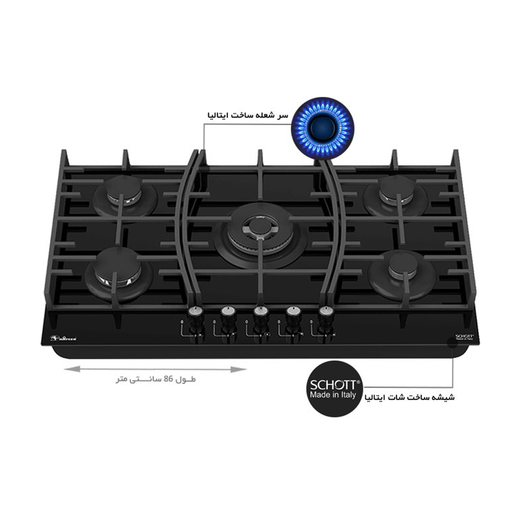 تعداد شعله: دارای 5 شعله با تجهیزات گازسوز ( پلوپز وسط )