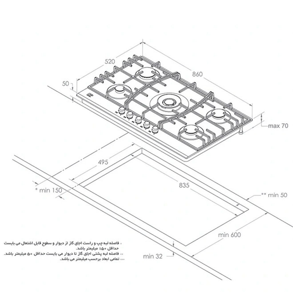 نوع محصول: گاز صفحهای رومیزی (Built-in Hob)
