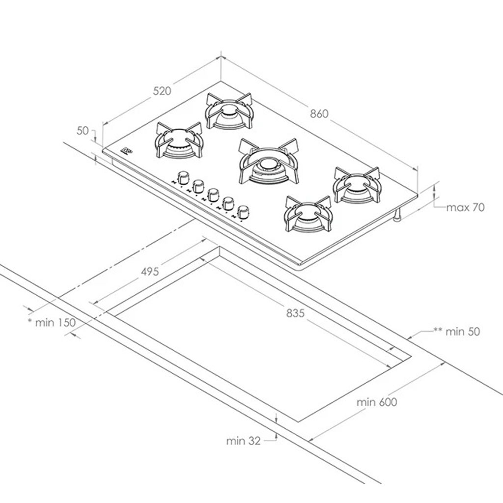 نوع محصول: گاز صفحهای رومیزی (Built-in Hob)