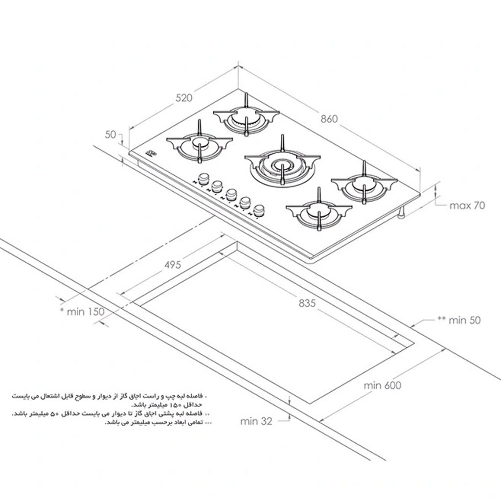 نوع محصول: گاز صفحهای رومیزی (Built-in Hob)