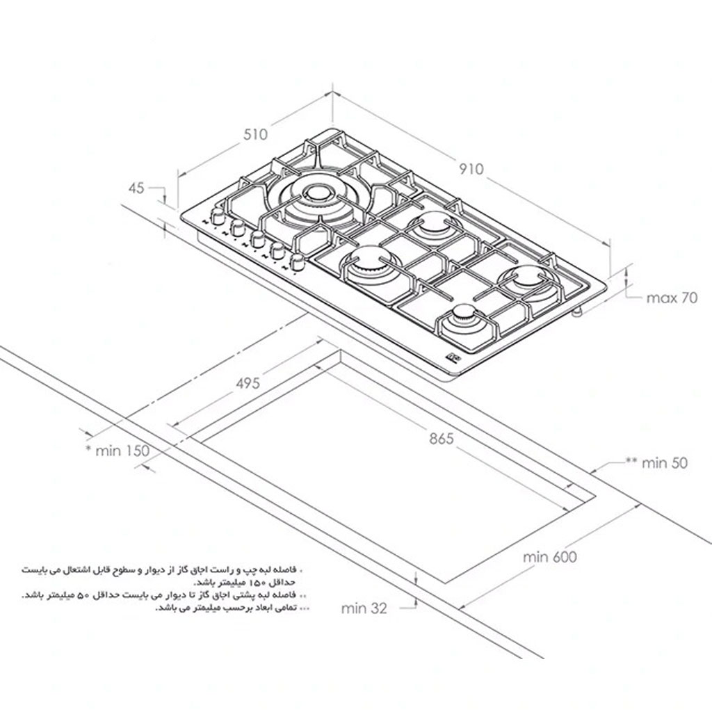نوع محصول: گاز صفحهای رومیزی (Built-in Hob)