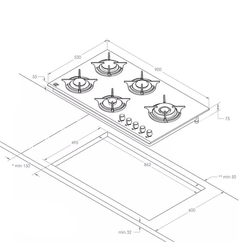 صفحه شیشهای مشکی براق با ضخامت ۸ میلیمتر، جلوهای لوکس و بدون انعکاس مزاحم به آشپزخانه میبخشد و در برابر لکه و اثر انگشت مقاوم است. سطح کاملاً صاف شیشه از نفوذ چربی و آلودگی جلوگیری کرده و با یک دستمال نرم بهسادگی تمیز میشود. قرارگیری پلوپز در سمت راست، تعادل بهتری برای کاربران راستدست ایجاد کرده و دسترسی به تمامی شعلهها را آسانتر میسازد. ابعاد ۹۰ سانتیمتری، فضای کافی برای استفاده همزمان از چندین ظرف بزرگ را فراهم میآورد.
