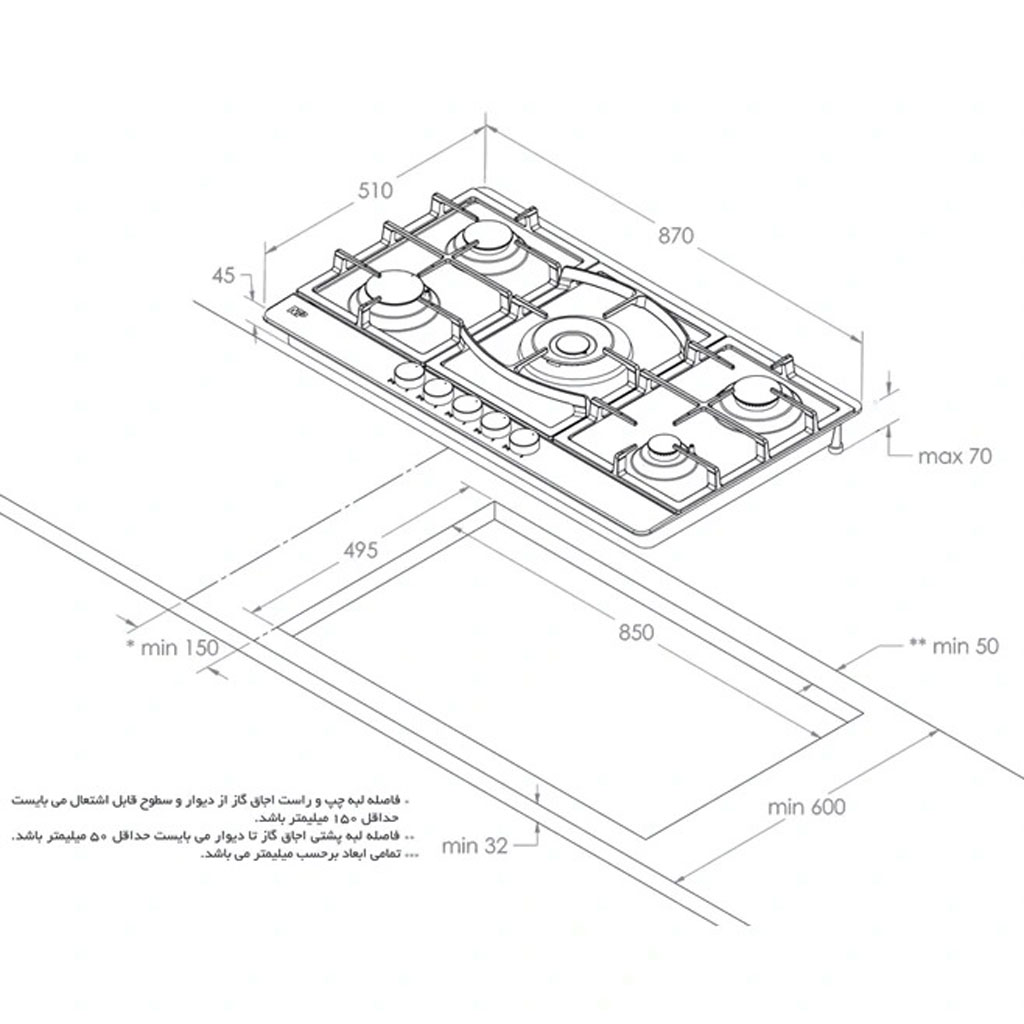 نوع محصول: گاز صفحهای رو میزی (Built-in Hob)