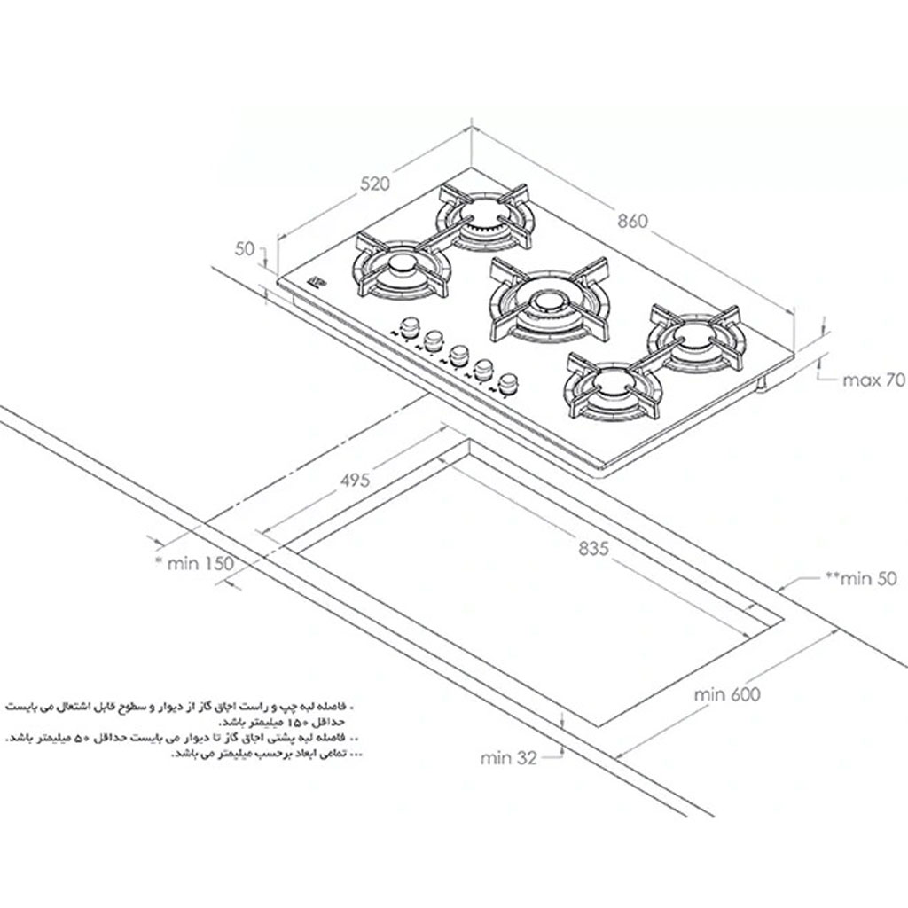 نوع محصول: گاز صفحهای رو میزی (Built-in Hob)