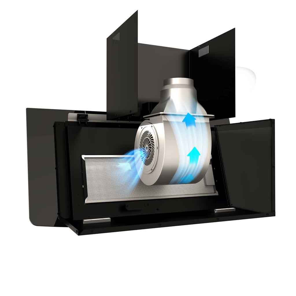 در قلب این طراحی زیبا، یک موتور فلزی توربو با ۴ دور قدرت مختلف قرار دارد. این موتور قادر به تولید مکش مؤثر ۷۰۰ تا ۹۰۰ متر مکعب در ساعت است که به سرعت و با کارایی بالا، هوای آشپزخانه را از هرگونه آلودگی پاک میکند. عملکرد این موتور قدرتمند، در محدوده صدای ۴۸ تا ۵۸ دسیبل قرار دارد و آرامش محیط خانه شما را حفظ مینماید.