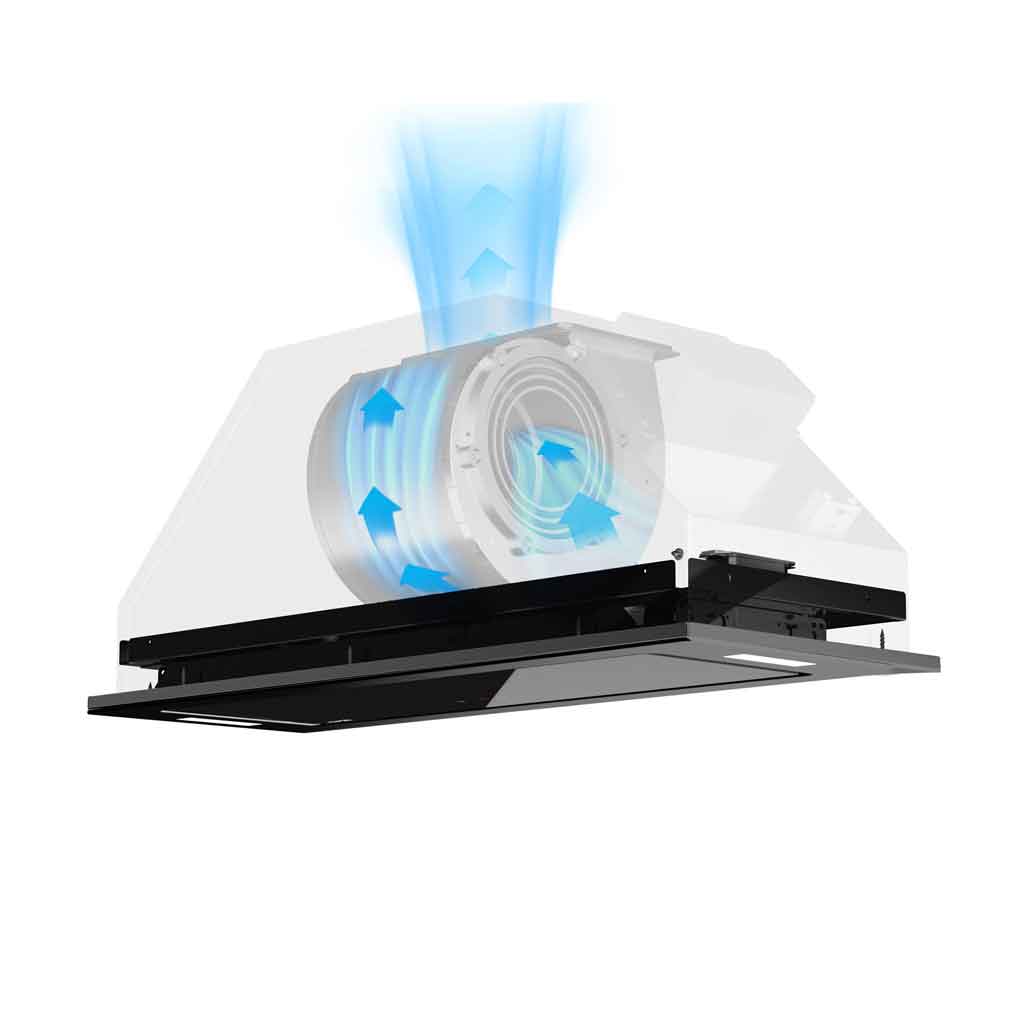 در پس این نمای زیبا، یک موتور فلزی توربو 4 دور با قدرت مکش 700 تا 900 متر مکعب بر ساعت جای گرفته است. این موتور قدرتمند با پوسته تمام فلزی خود، تضمینکننده دوام و عملکردی بینقص در طول سالها استفاده است. طراحی بهینه موتور، سطح صدای آن را بین 48 تا 58 دسیبل نگه میدارد و اجازه میدهد در حین پختوپز، مکالمه و آرامش شما در آشپزخانه برقرار بماند.