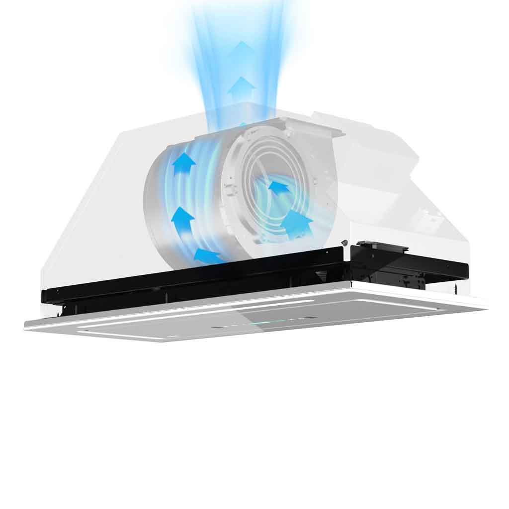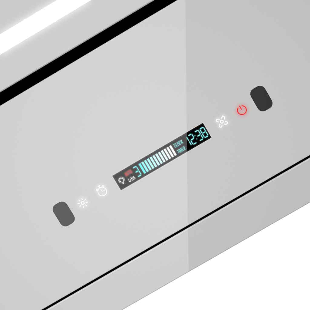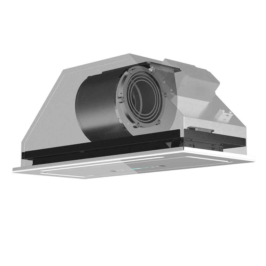 این هود اثبات میکند که ظرافت ظاهری به معنای کمتوانی نیست. درون این قاب سفیدرنگ، یک موتور فلزی توربو با ۵ دور تنظیم مختلف جای گرفته که قدرتی قابل توجه در محدوده ۷۰۰ تا ۹۰۰ متر مکعب بر ساعت تولید میکند. این سطح از قدرت مکش، تضمین میکند که در کوتاهترین زمان ممکن، هوای آشپزخانه از هرگونه دود، بخار و بوی نامطبوع پاکسازی شود.