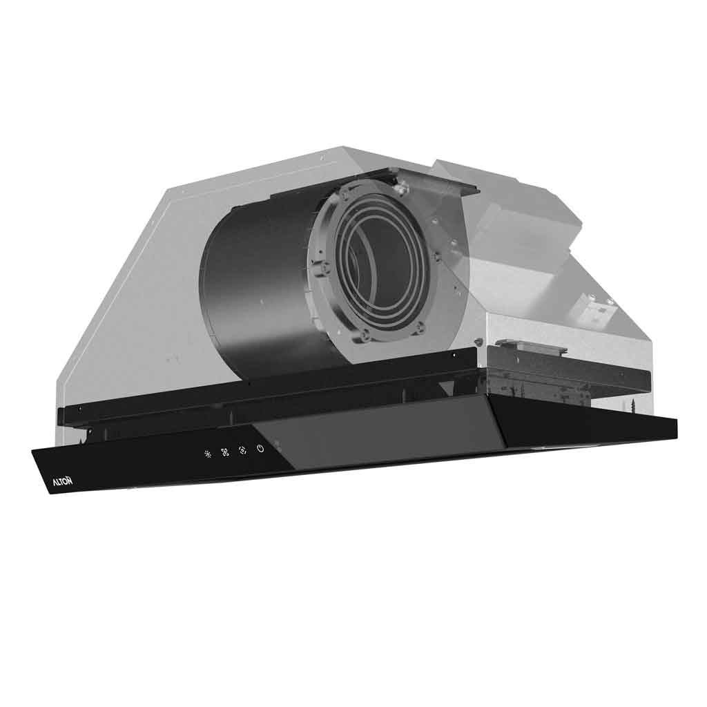 درون این طراحی ظریف، یک موتور توربو فلزی با ۵ دور مختلف جای گرفته است. این موتور قدرتمند قادر است با قدرت مکش ۷۰۰ تا ۹۰۰ متر مکعب در ساعت، تمامی بخارات، بوهای نامطبوع و ذرات چربی را در لحظه از بین ببرد. عملکرد این قدرت با سطح صدای مناسب (۴۸ تا ۵۸ دسیبل) همراه است، به طوری که در دور کند، حضوری آرام و بیسروصدا دارد.
