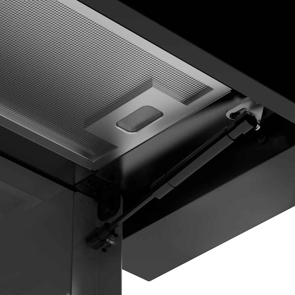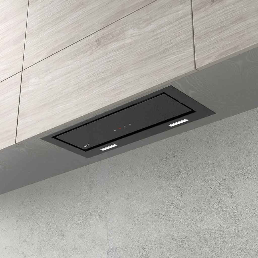 این هود با عرض ۷۰ سانتیمتر و طراحی کاملاً مخفی (توکار)، در دل کابینتهای آشپزخانه شما ناپدید میشود و تنها در زمان نیاز، با نمای شیشه سکوریت مشکی و چارچوب استیل خود، جلوهای لوکس و امروزی به فضا میبخشد. این طراحی نه تنها زیباست، بلکه به دلیل استفاده از شیشه مقاوم در برابر حرارت و ضربه، بسیار بادوام و کاربردی است.
