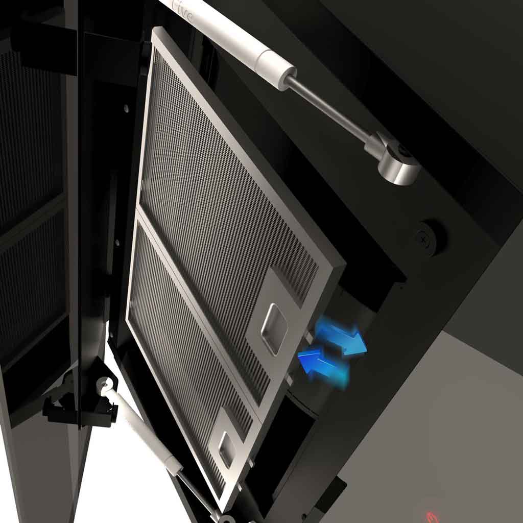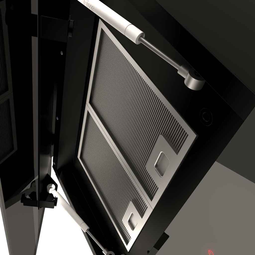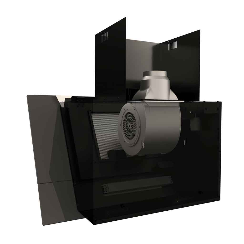 بدنهی تماماً شیشه سکوریت مشکی این هود، جلوهای لوکس و هماهنگ با اکثر سبکهای آشپزخانه، به ویژه طرحهای مدرن و صنعتی ایجاد میکند. ابعاد ۹۰ سانتیمتری آن پوشش کاملی بر روی اجاق گازهای استاندارد ارائه میدهد. در زیر این ظاهر آرام و زیبا، موتور فلزی توربو ۵ دور با قدرت مکش ۷۰۰ تا ۹۰۰ متر مکعب بر ساعت قرار دارد که با قدرتی کمنظیر، هر گونه دود، بوی نامطبوع و رطوبت اضافی را به سرعت از محیط پاک میکند.
