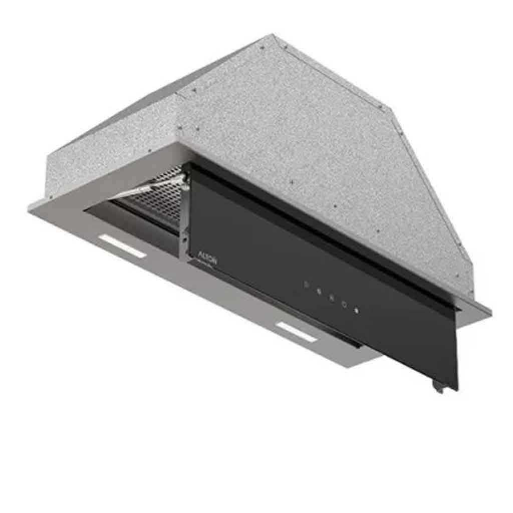 این هود با نوع نصب توکار (مخفی) و سایز 70 سانتیمتری، بهراحتی در داخل کابینت جای میگیرد و هنگامی که فعال نیست، تنها نمای استیل و شیشه سکوریت مشکی آن دیده میشود. این طراحی مینیمال و لوکس، به آشپزخانه شما جلوهای منسجم و شیک میبخشد و فضای باارزش روی کابینت را اشغال نمیکند.