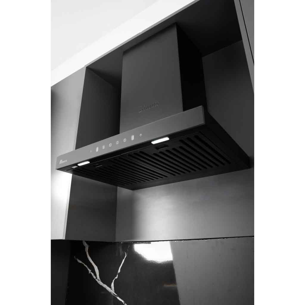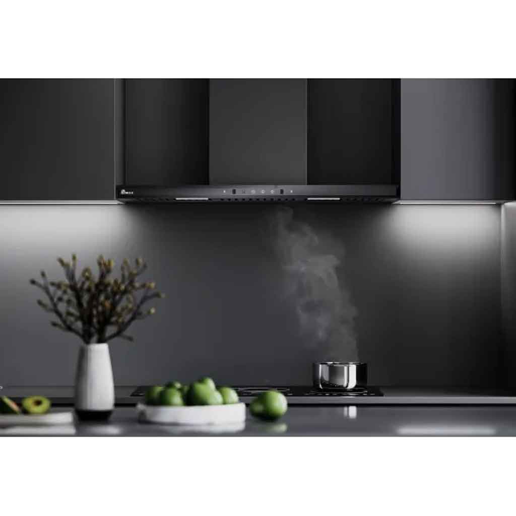 هود شومینهای بیمکث مدل ۱۳۰۱ مشکی: ادغام ظرافت و قدرت با فناوری پیشرفته