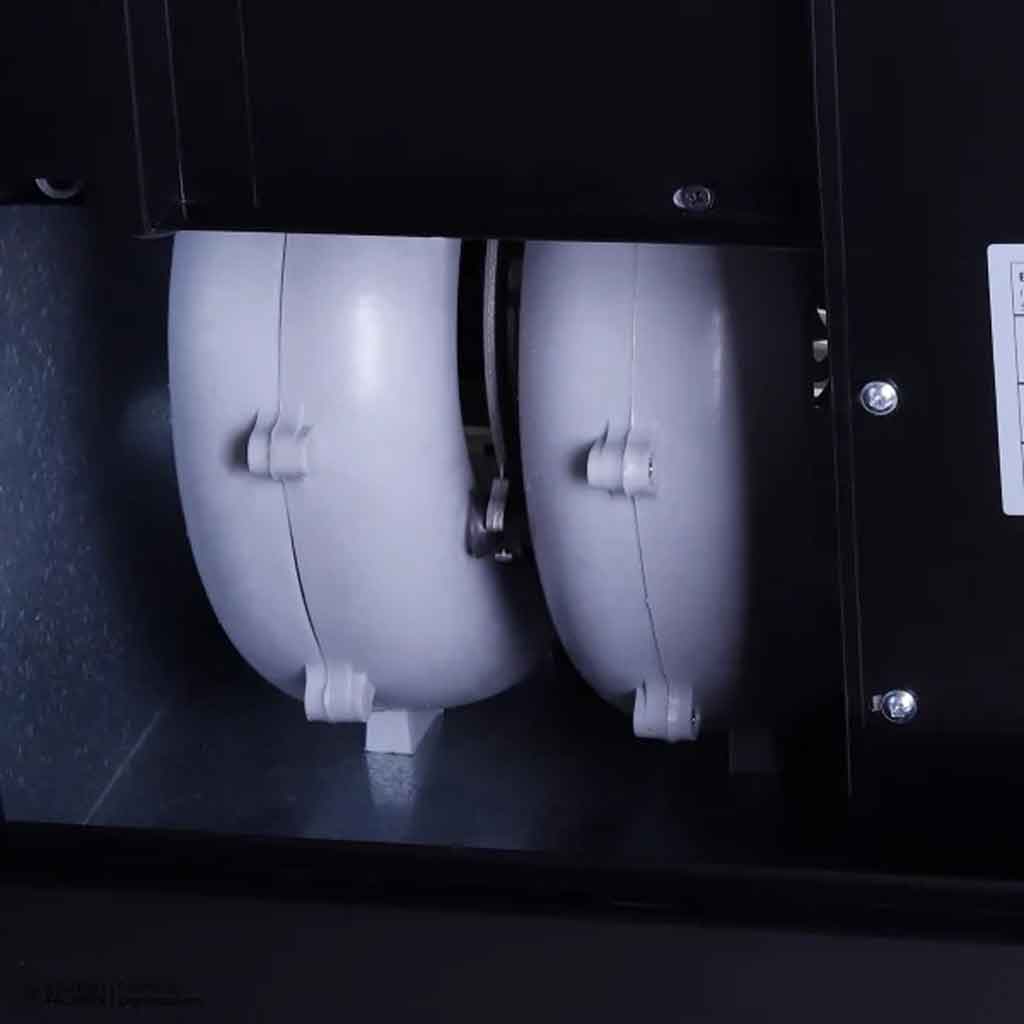 در هسته این دستگاه، یک موتور توربو ۴ دور با توان مکش خارقالعاده ۶۵۰ مترمکعب در ساعت قرار دارد. این قدرت بهگونهای طراحی شده که حتی در حالت توربو، میزان صدای آن در محدوده قابل قبول (حداکثر ۶۸ دسیبل) باقی میماند و در دور کند، آرامش آشپزخانه با سطح صدای حدود ۵۲ دسیبل برقرار میماند. استفاده از پروانه نسوز پلی پروپیلن الیافدار نیز تضمینکننده دوام و کارایی بلندمدت موتور است.