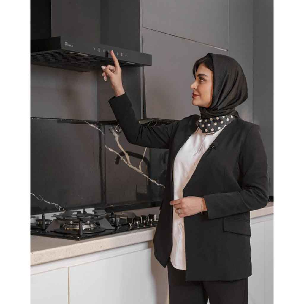 این هود با بدنه فولادی به رنگ مشکی و تلفیق آن با شیشه سکوریت، جلوهای لوکس، مدرن و همیشه کلاسیک به فضای آشپزخانه میبخشد. ابعاد کاملاً استاندارد آن (عرض ۹۰ سانتیمتر، عمق ۴۵ سانتیمتر و ارتفاع ۳۴ سانتیمتر) نصب بیدردسر و هماهنگی کامل با کابینتها را تضمین میکند.