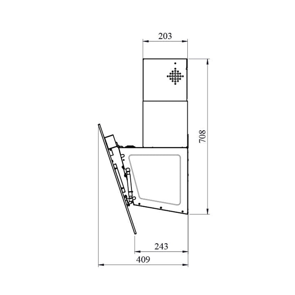 این هود با سایز 90 سانتیمتر و طراحی مورب، حضوری چشمگیر و در عین حال موزون در فضای آشپزخانه ایجاد میکند. خطوط مورب آن علاوه بر ایجاد جلوهای پویا، کارایی عملی را نیز در نظر گرفته و امکان دسترسی بهتری فراهم میکند. رنگ مشکی عمیق و باشکوه آن، جلوهای لوکس و ماندگار به فضای آشپزخانه میبخشد.
