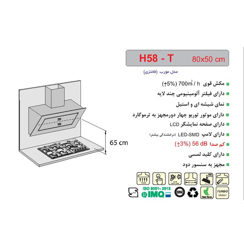 ویژگیهای دیگر هود قابلیت نصب فیلتر ذغالی ندارد،دودکش مکعبی شکل ،دارای لامپ SMD برای درخشندگی بیشتر و موتور توربو چهاردور ،دارای 18 ماه گارانتی شرکت اخوان