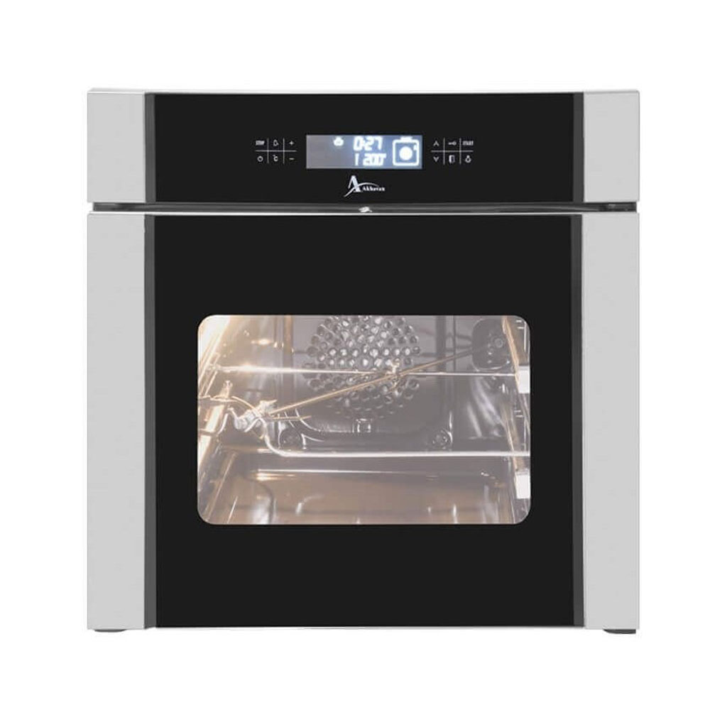 فر اخوان مدل F35 با ترکیب استیل و شیشه مشکی، ظاهری مدرن و لوکس دارد که بهخوبی با انواع دکوراسیون آشپزخانه هماهنگ میشود. استفاده از شیشه سکوریت مقاوم به حرارت علاوه بر زیبایی، دوام و مقاومت بالایی را تضمین میکند. پنل لمسی دیجیتال با طراحی ساده و کاربردی، تجربهای کاربرپسند و حرفهای را برای مصرفکننده فراهم میآورد. ابعاد استاندارد این فر نیز امکان نصب آسان در کابینتهای آشپزخانه را فراهم میکند و جلوهای هماهنگ و شیک ایجاد میکند.