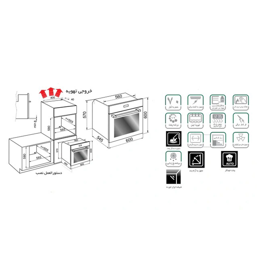 ابعاد بیرونی محصول : طول فر : 60CM عرض فر : 60CM عمق فر : 55CM