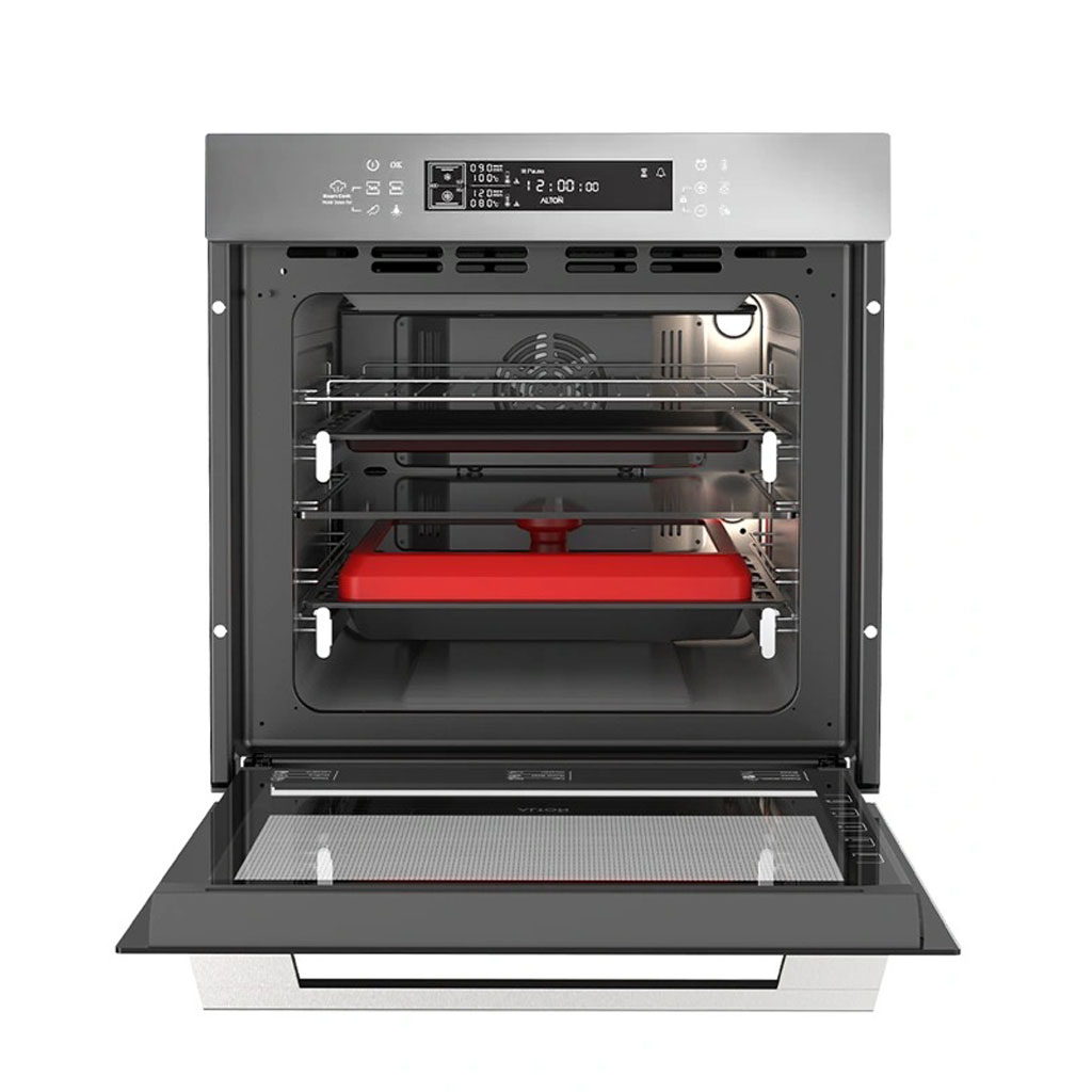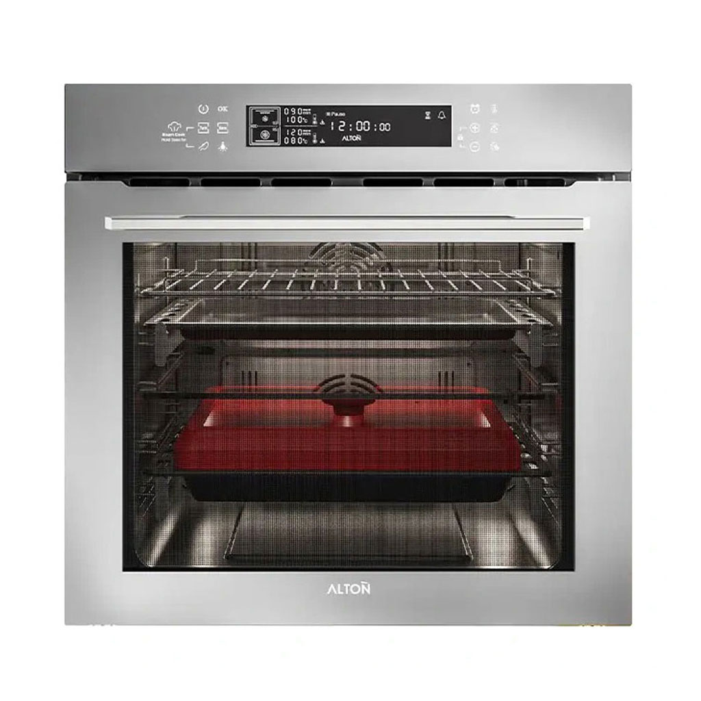 فر توکار آلتون V503T درای سیستم بخار پز و حجم داخلی 72 لیتر و درب 4 جداره جداشونده و صفحه نمایش دیجیتال لمسی و twinدوقلو (دارای 2 فر مجزا و امکان تبدیل به یک فر) و 17 برنامه پخت و قفل کودک و تایمر پیشرفته زمان پخت و برنامه یخ زدایی و سیستم meat probe حسگر پخت گوشت و فن گردش هوای داغ می باشد.