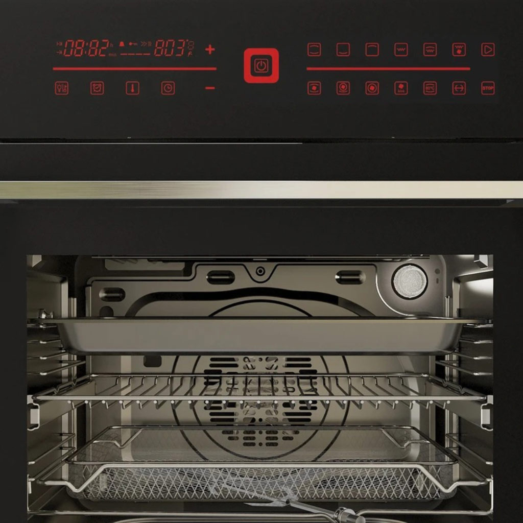 فر کن مدل E6502 با شیشه مشکی و طراحی ساده، جلوهای مینیمال و هماهنگ با کابینتهای مدرن ایجاد میکند. پنل لمسی دیجیتال تجربهای کاربرپسند فراهم میآورد. درب آرامبند و طراحی ارگونومیک دستگیرهها راحتی کاربری و ایمنی را افزایش میدهد.