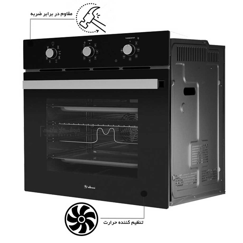 سیستم گرمایش: پایین، بالا (شامل المنت دور و گریل)، پشت برقی