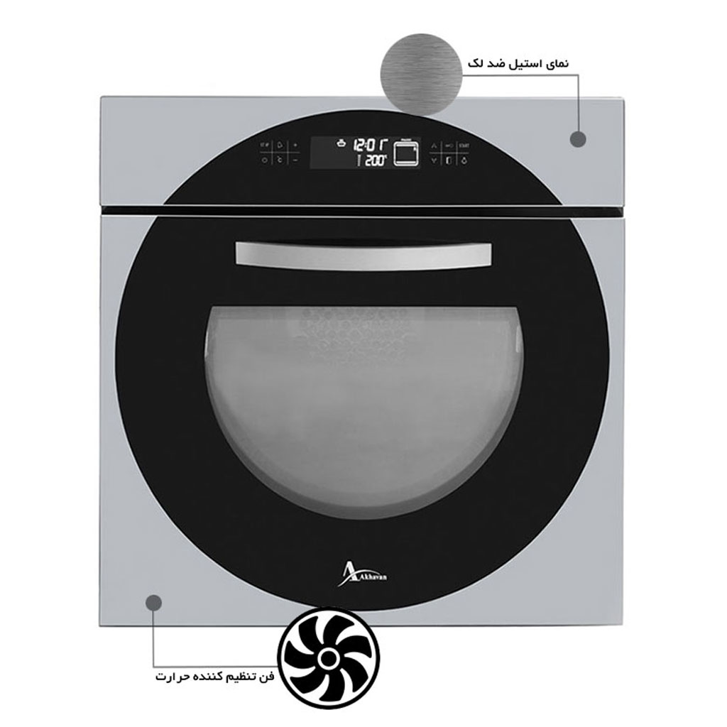 فر اخوان مدل F39 با ترکیب شیشه آیینهای و مشکی، جلوهای مدرن و لوکس به آشپزخانه میبخشد. طراحی مینیمال و استفاده