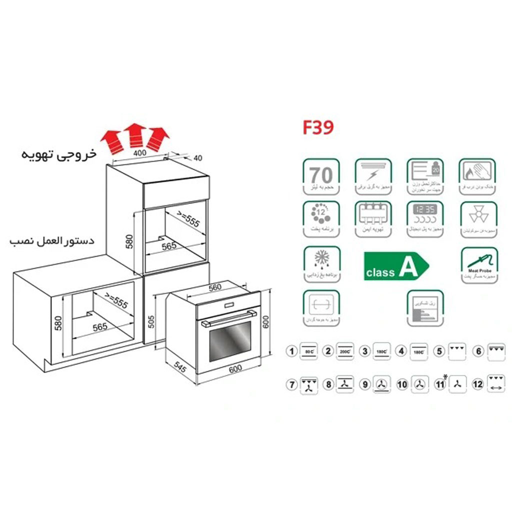 فر برقی توکار اخوان مدل F39 با طراحی شیشه آیینهای و مشکی، کنترل لمسی، 12 برنامه پخت و امکاناتی مانند فن داکتی، حسگر پخت و ترموکوپل دو زمانه، گزینهای مناسب برای خانوادههایی است که به دنبال دستگاهی مدرن، ایمن و کاربردی هستند. این مدل با ترکیب طراحی لوکس و عملکرد قابل اعتماد، انتخابی عالی برای آشپزخانههای امروزی محسوب میشود.