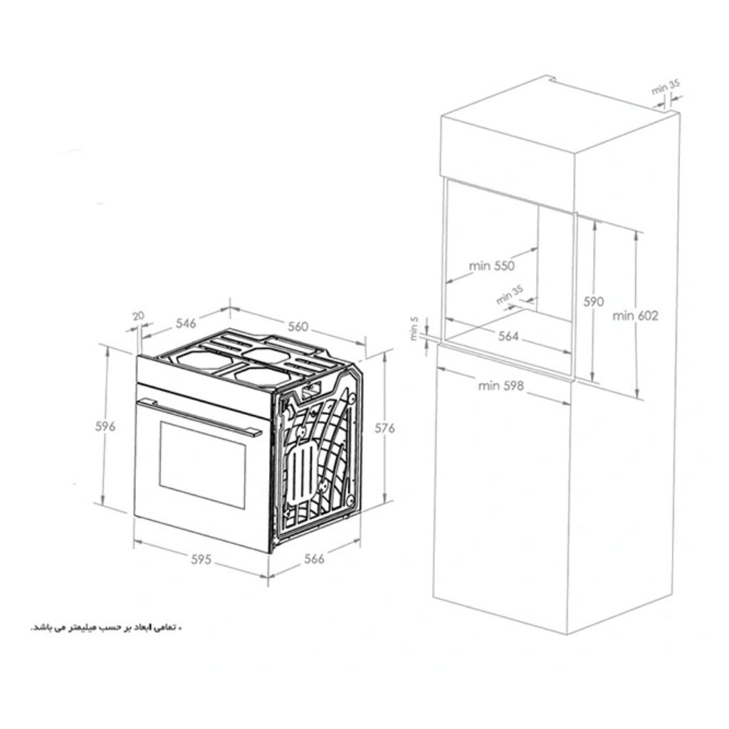 مجهز به فن کانوکشن توزیع یکنواخت دما جهت پخت یکسان غذا + گریل