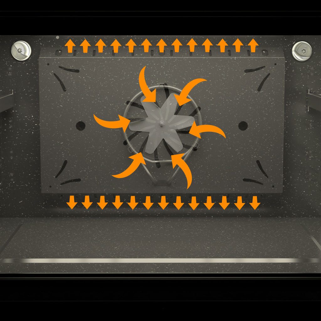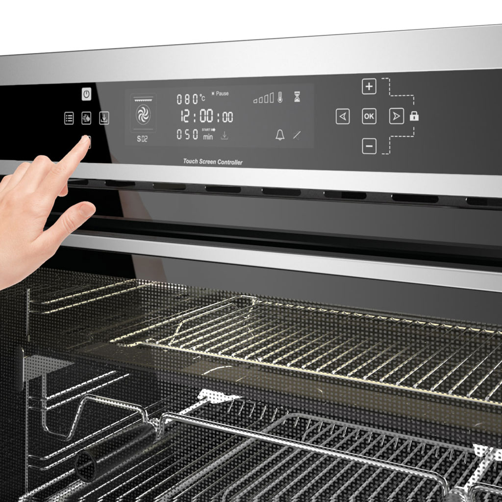 این فر با ظرفیت بزرگ ۹۵ لیتری و دو موتور جوجهگردان، امکان پخت حجم بالایی از غذاها را بهطور همزمان فراهم میکند. وجود فن کانوکشن باعث پخش یکنواخت حرارت در محفظه میشود و حسگر Meat Prob دقت بالایی در پخت غذاهای گوشتی ایجاد میکند. برنامه پخت سریع نیز زمان آمادهسازی غذا را کاهش میدهد.